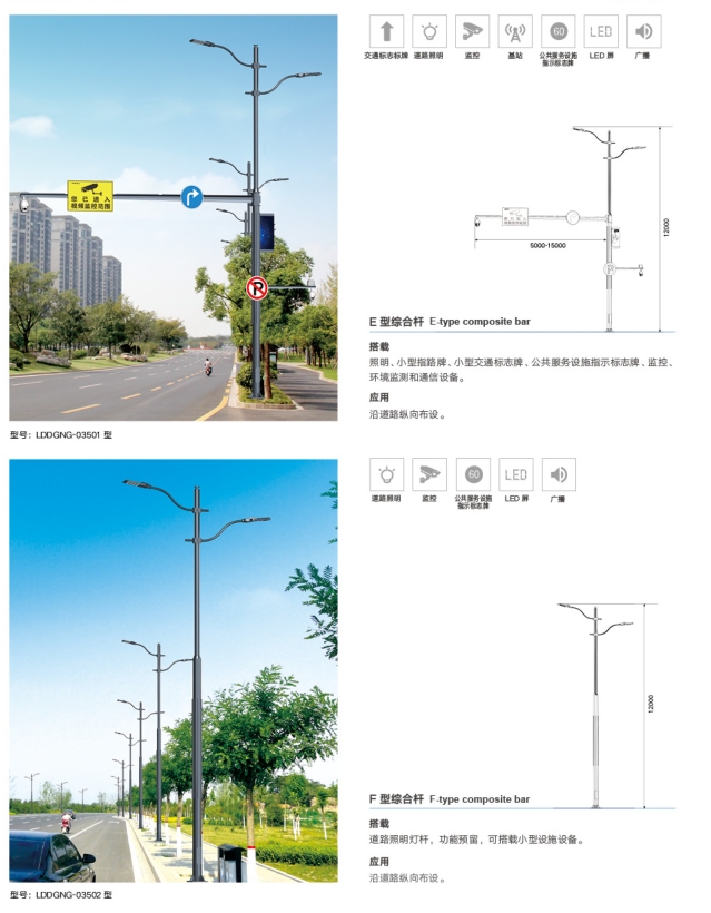 3. 布局形式:采用多桿合一的布局形式,將不同功能的桿件進(jìn)行組合,如路燈桿、交通信號(hào)桿、監(jiān)控桿等,以實(shí)現(xiàn)資源的共享和優(yōu)化。
