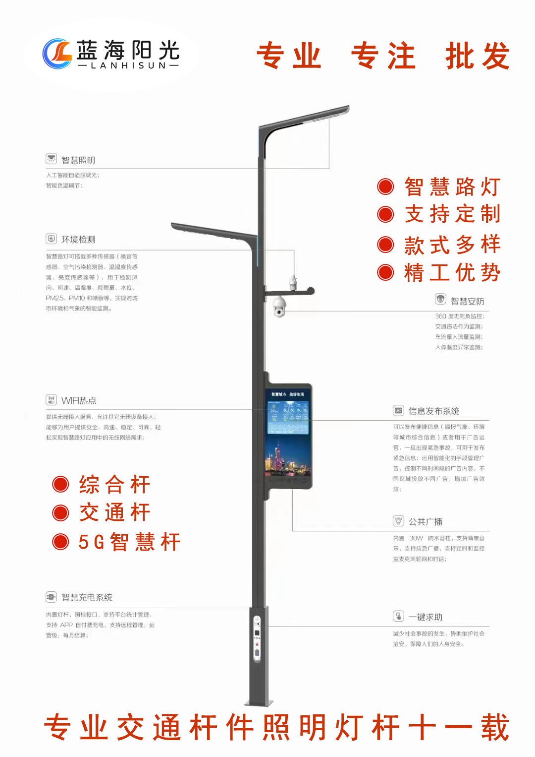 多功能交通桿:智慧城市交通管理的“全能衛(wèi)士隨著城市化進(jìn)程加速,傳統(tǒng)交通設(shè)施已難以滿足復(fù)雜路況的管理需求。在此背景下,**多功能交通桿**憑借其集成化、智能化的設(shè)計(jì),成為現(xiàn)代智慧交通建設(shè)的關(guān)鍵設(shè)備。本文將從技術(shù)亮點(diǎn)、應(yīng)用價(jià)值及發(fā)展趨勢三大維度,解析這一創(chuàng)新產(chǎn)品如何賦能城市交通管理。一、技術(shù)突破:多功能交通桿的六大核心功能??1. 智能監(jiān)控與
